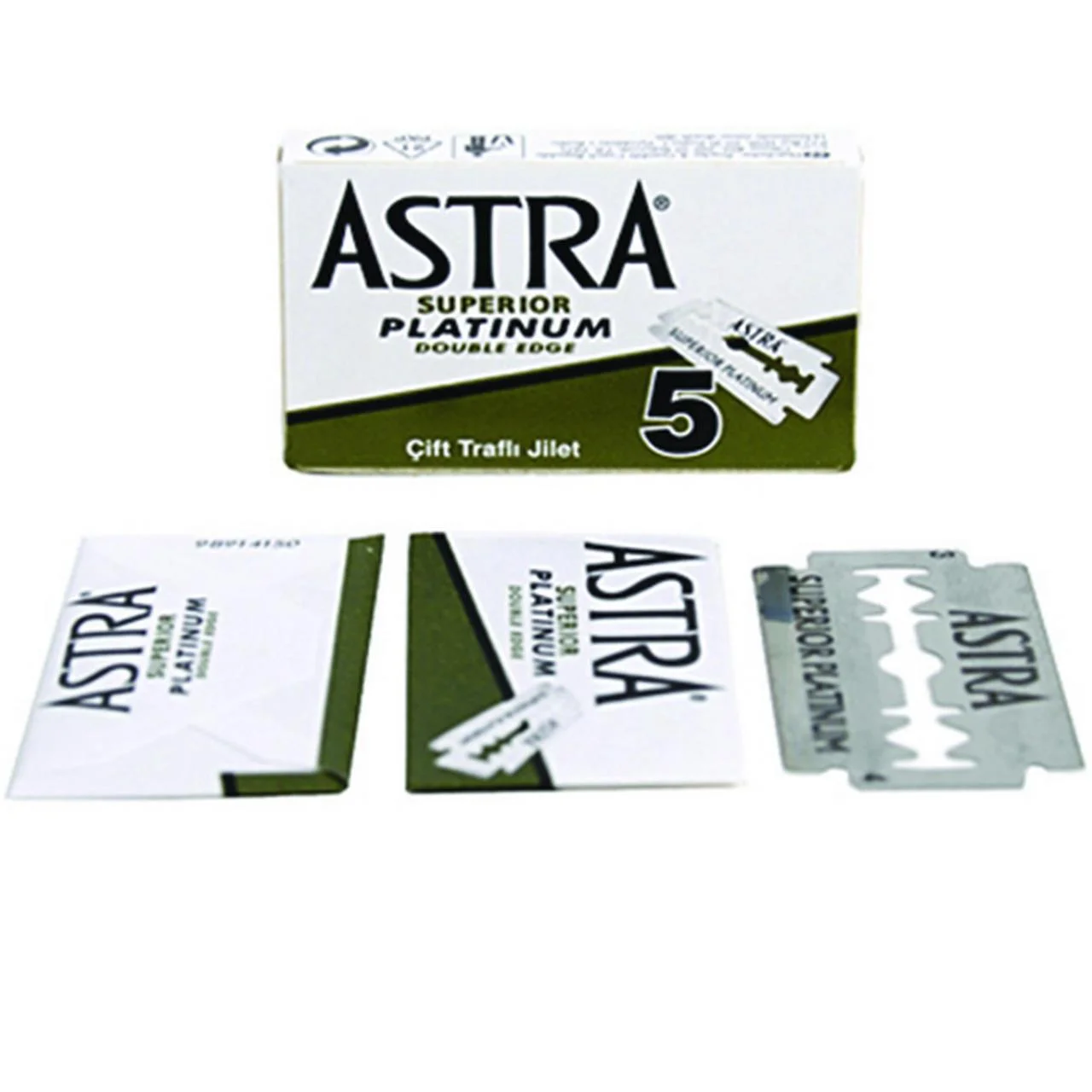 100 Astra Superior Premium Platinum Double Edge safety razor blades. Astra blades are renown for sharpness, durability and comfort. The platinum coating provides for increased comfort and blade life. Astra Blades have long been used by barbers in Europe and are one of our best-selling blades.