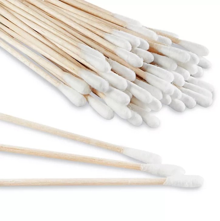- 100% cotton. 3/16″ tip with wood shaft.